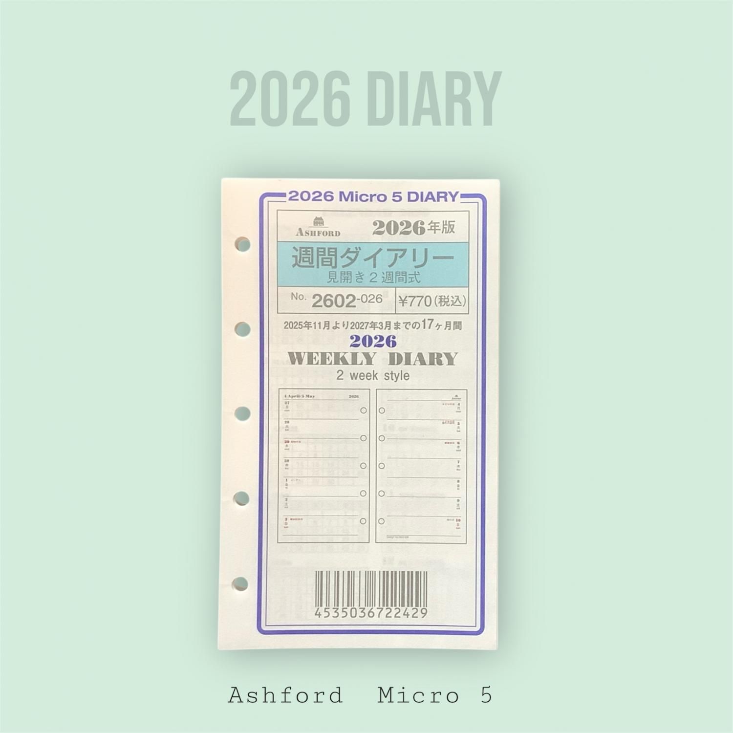 ASHFORD(アシュフォード)2026年 週間ダイアリー(見開き2週間式)No.2602-026