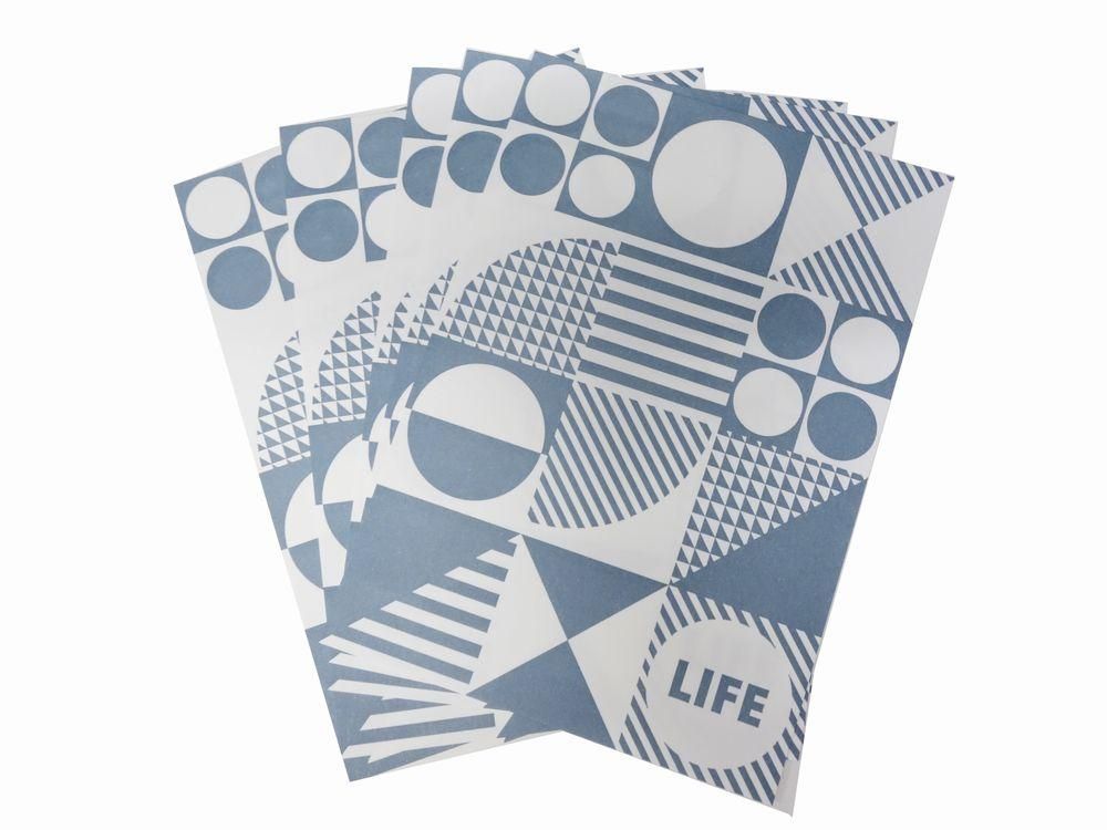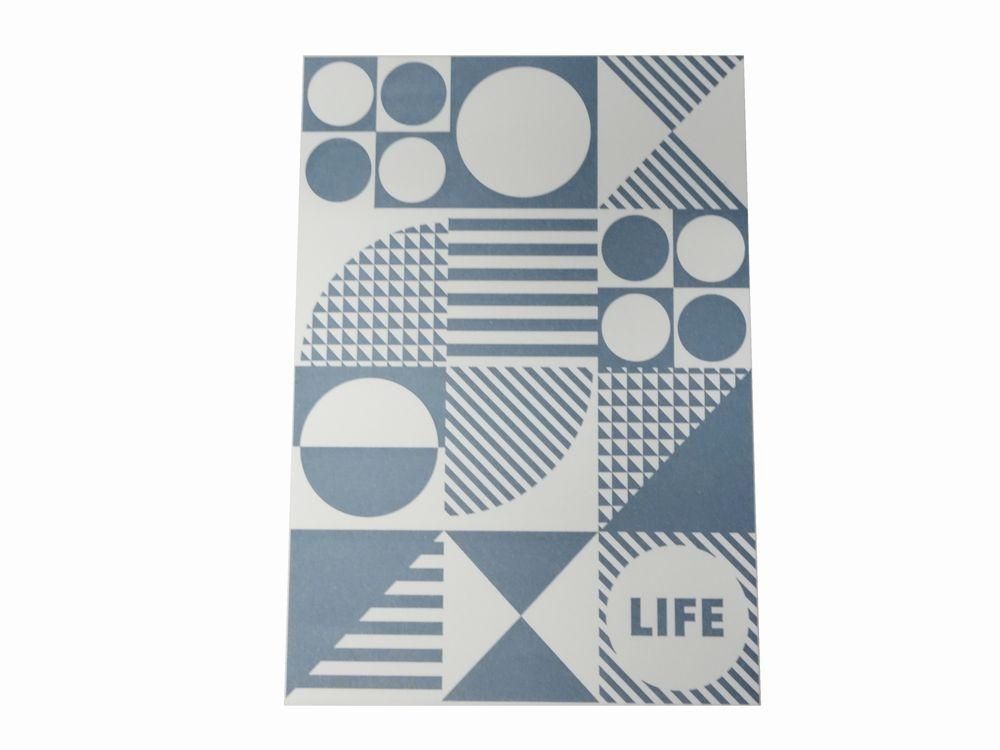 活版印刷で仕上げられた幾何学模様は、インク染みが目立たない色とデザインになっています。