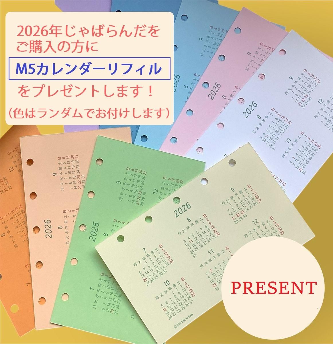 2026年じゃばらんだダイアリー1点に、「2026年M5カレンダーリフィル」を1つプレゼントさせていただきます。(色はランダムでお付けします)