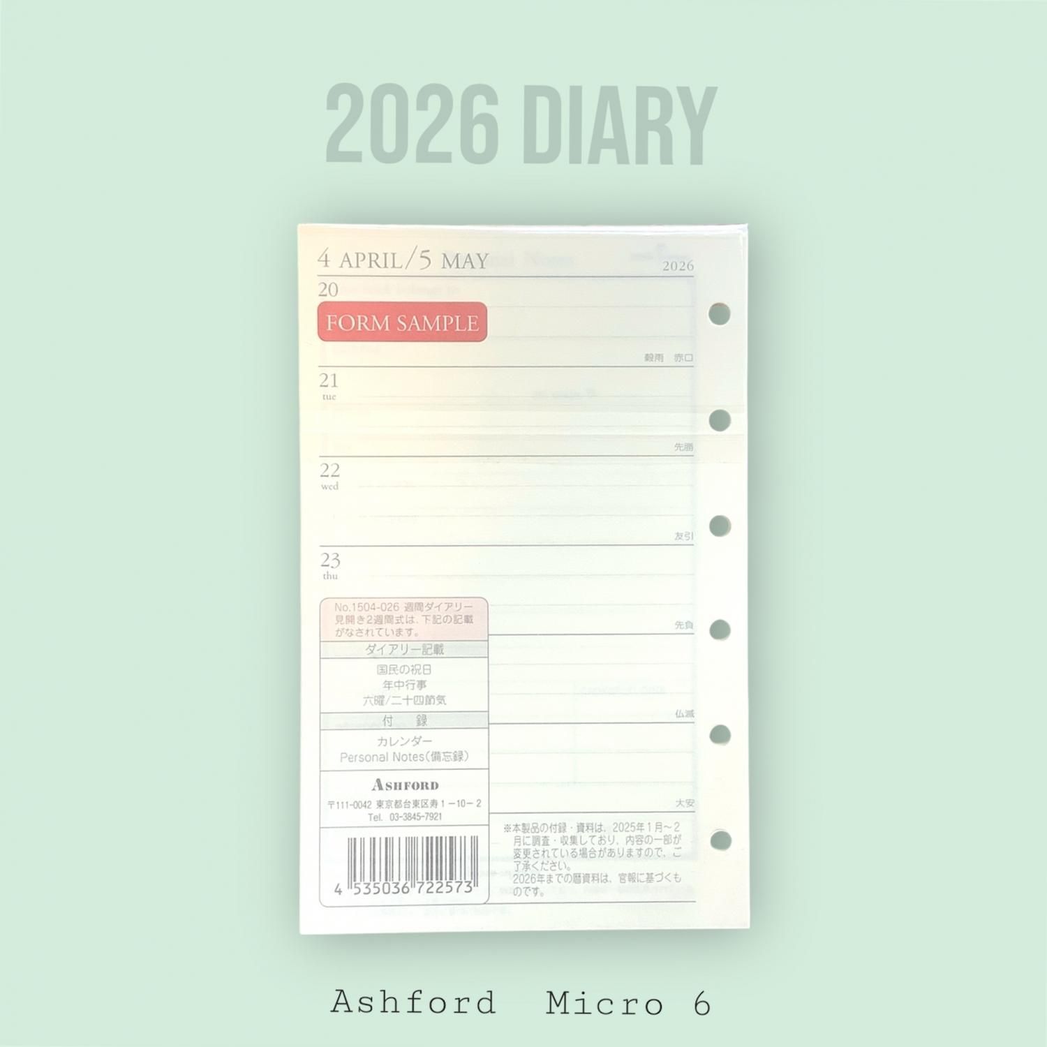 M6リフィル 2026年 週間ダイアリー(見開き2週間式)グレース紙 No.1504-026