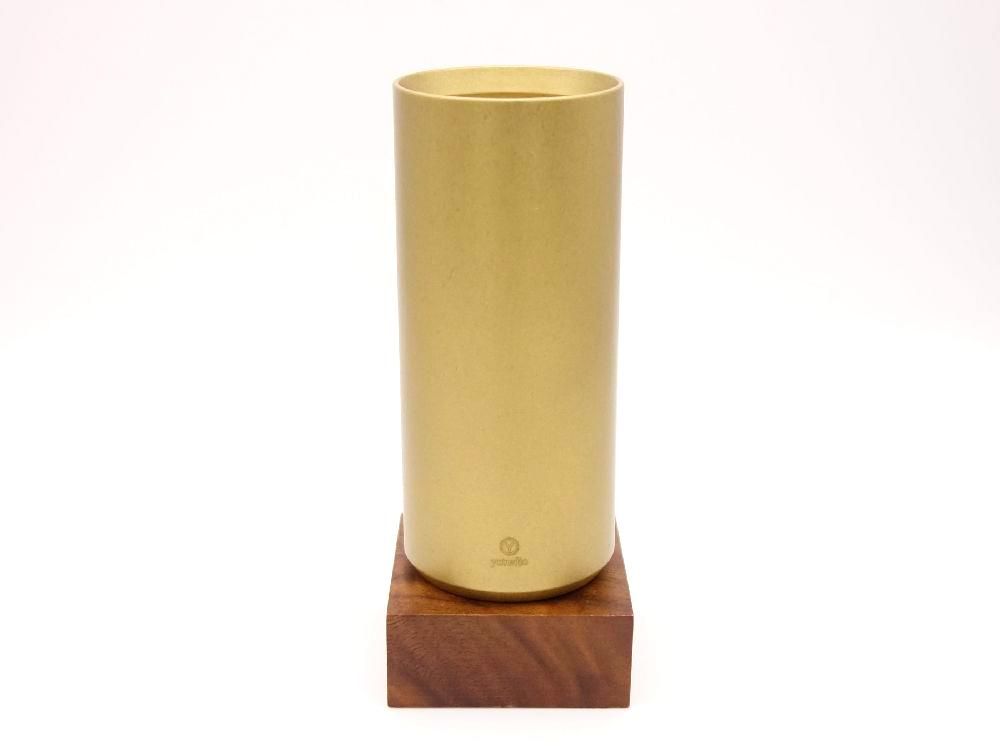 真鍮を厚めに削り出したボディをウォールナットの土台に据えた、シンプルなデザインのペンスタンドです。