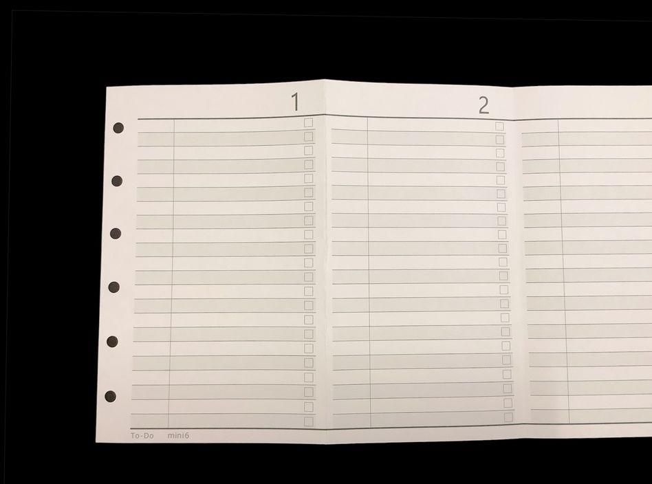 TODOですがダイアリーのように片面に1〜6までの番号と、裏面には7〜12の番号が入っています。