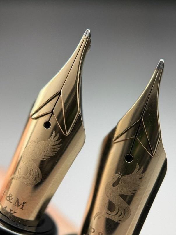 こちらのペン先はペン先が3段に重なっている3層タイプになります。重ねた繋ぎ目を分からないようにする処理、鏡面に磨き上げられたペンポイントなど、TAKUさんの技術力の高さに舌を巻きます。