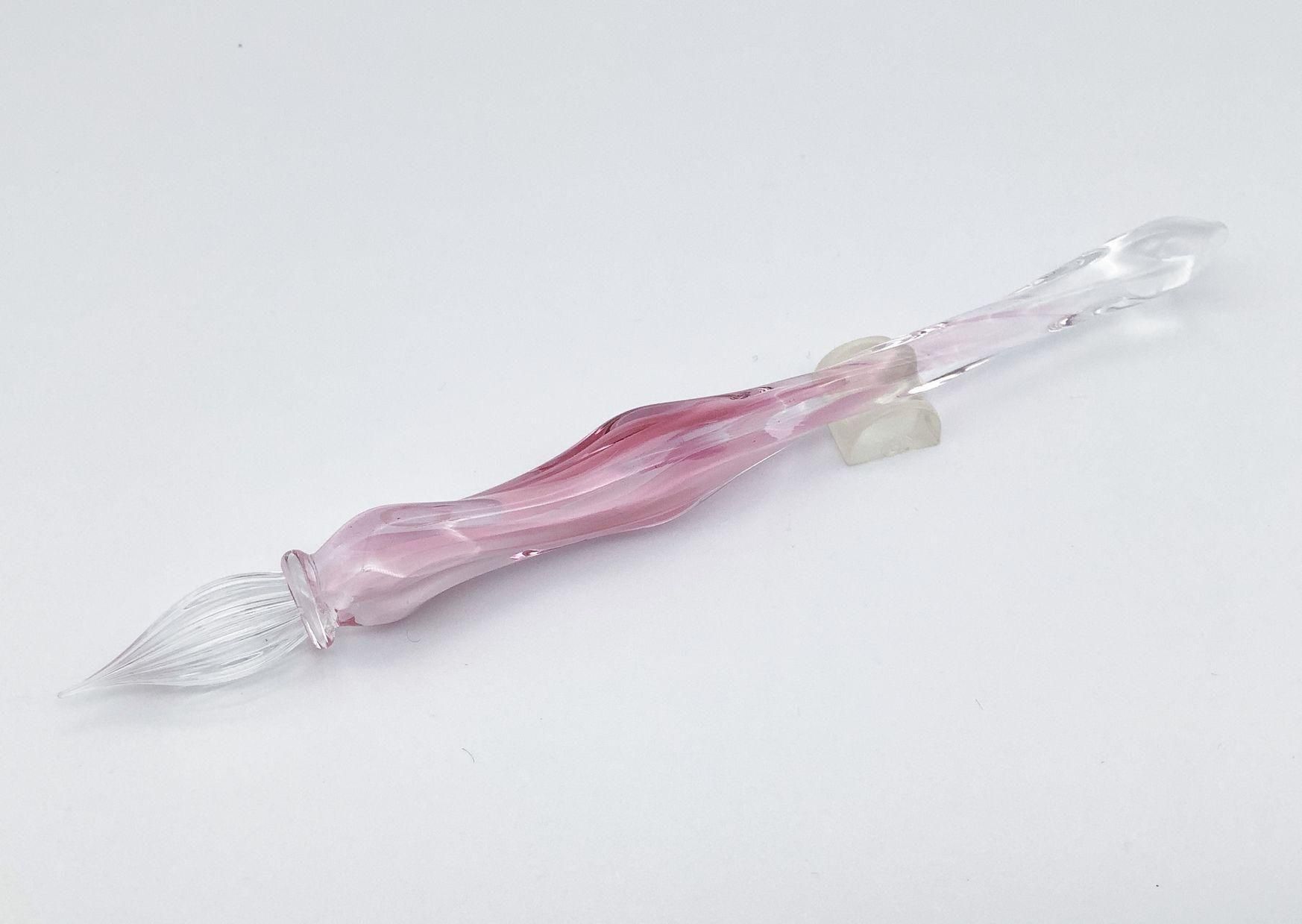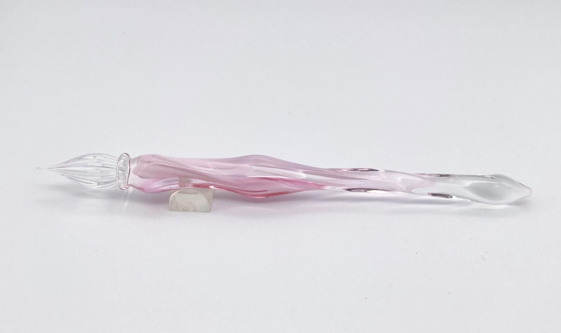 たちばな硝子工房さんのガラスペンです。四角形を螺旋にしたデザインで、手に持つ部分は細めです。