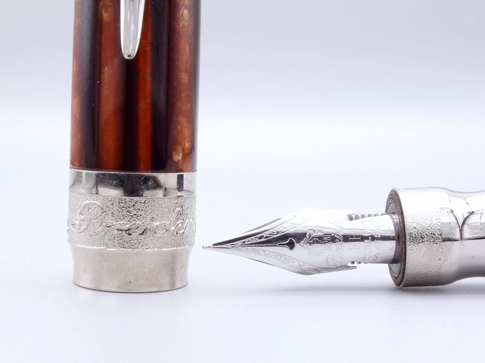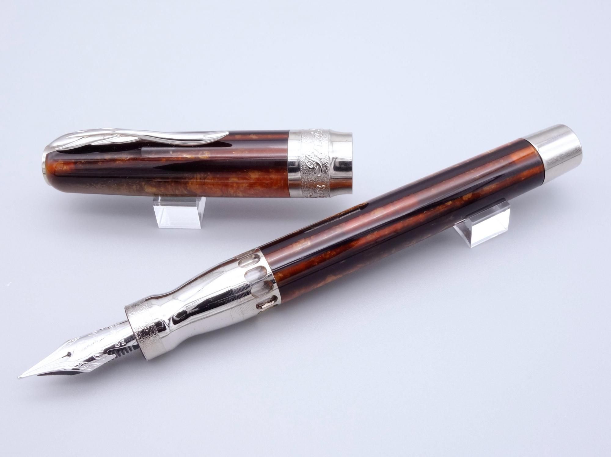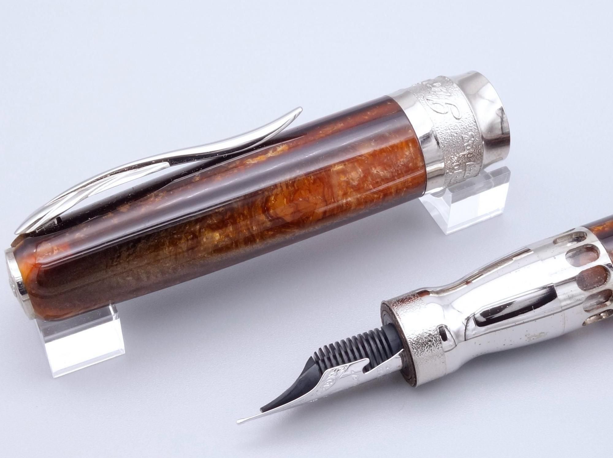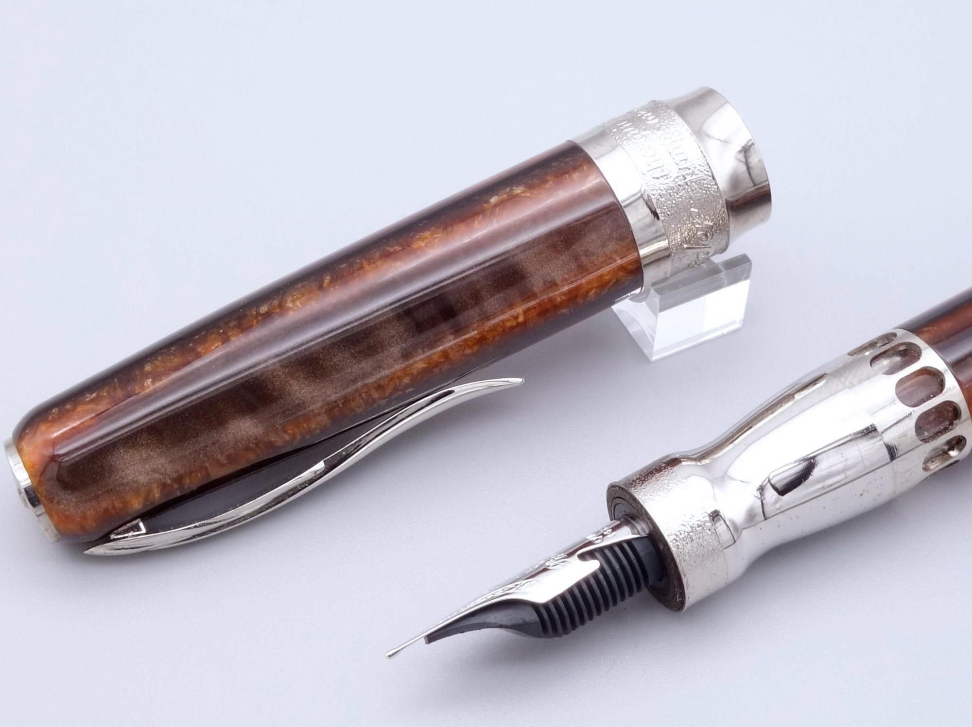 宝石の原石からインスピレーションを受けデザインされたボディや丸形のインクビューなど、装飾性が高いイタリアらしい万年筆です。