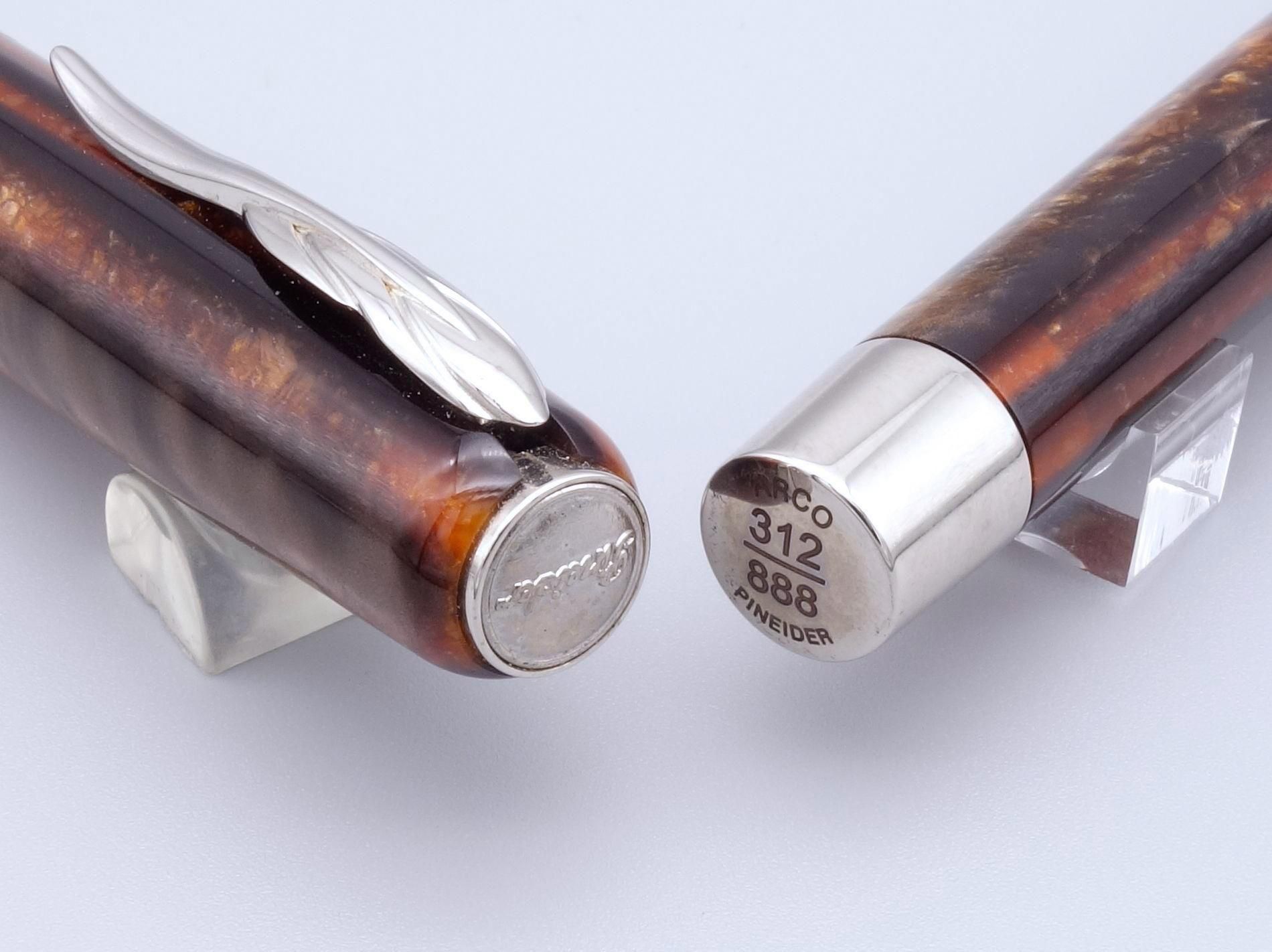 首軸に内蔵された磁石によってキャップを固定します。そのため軸のどこにもネジのない滑らかな仕上がりとなっています。また尻軸にも磁石が内蔵されているので、筆記時には後ろに差して固定が可能です。