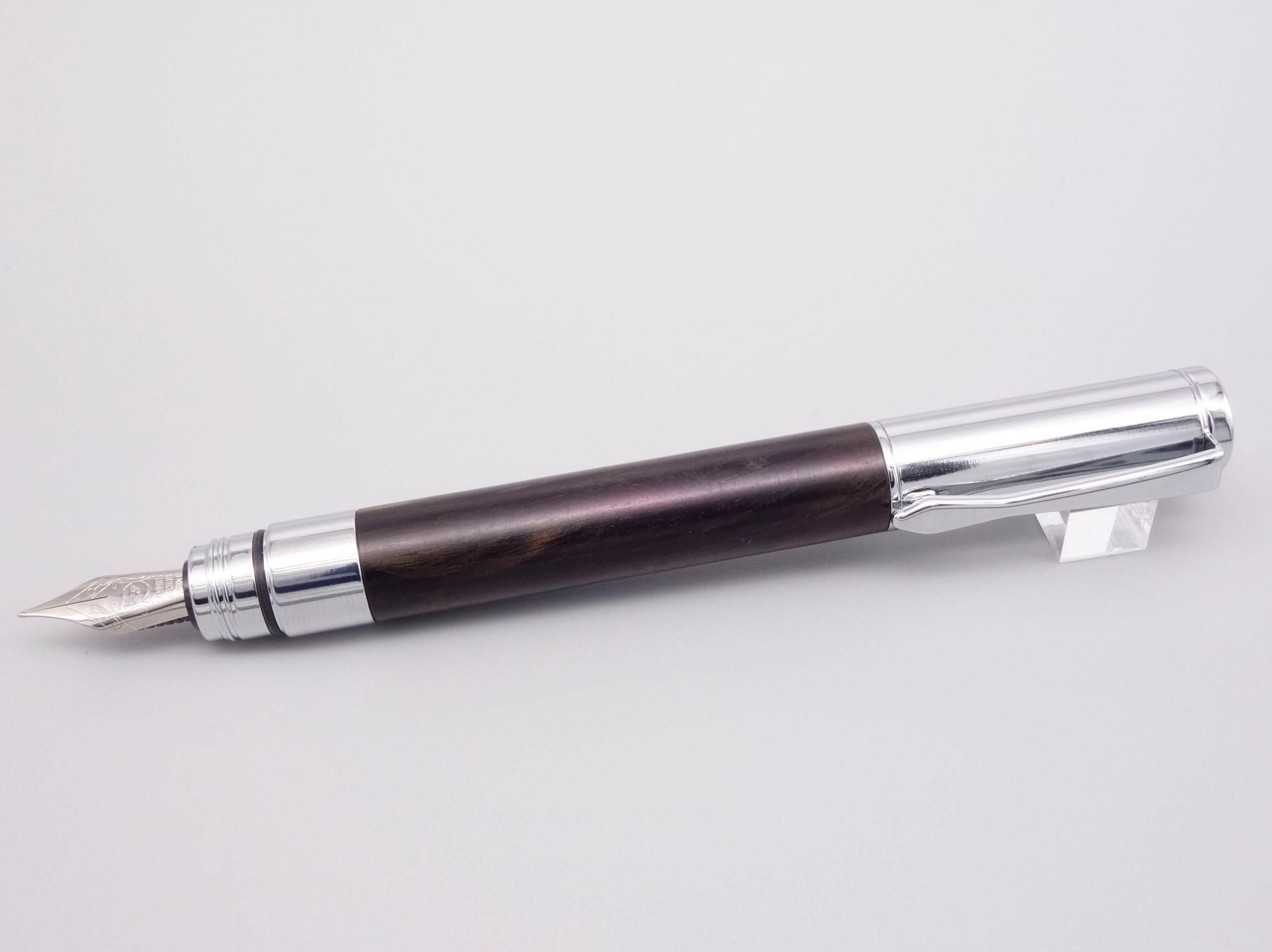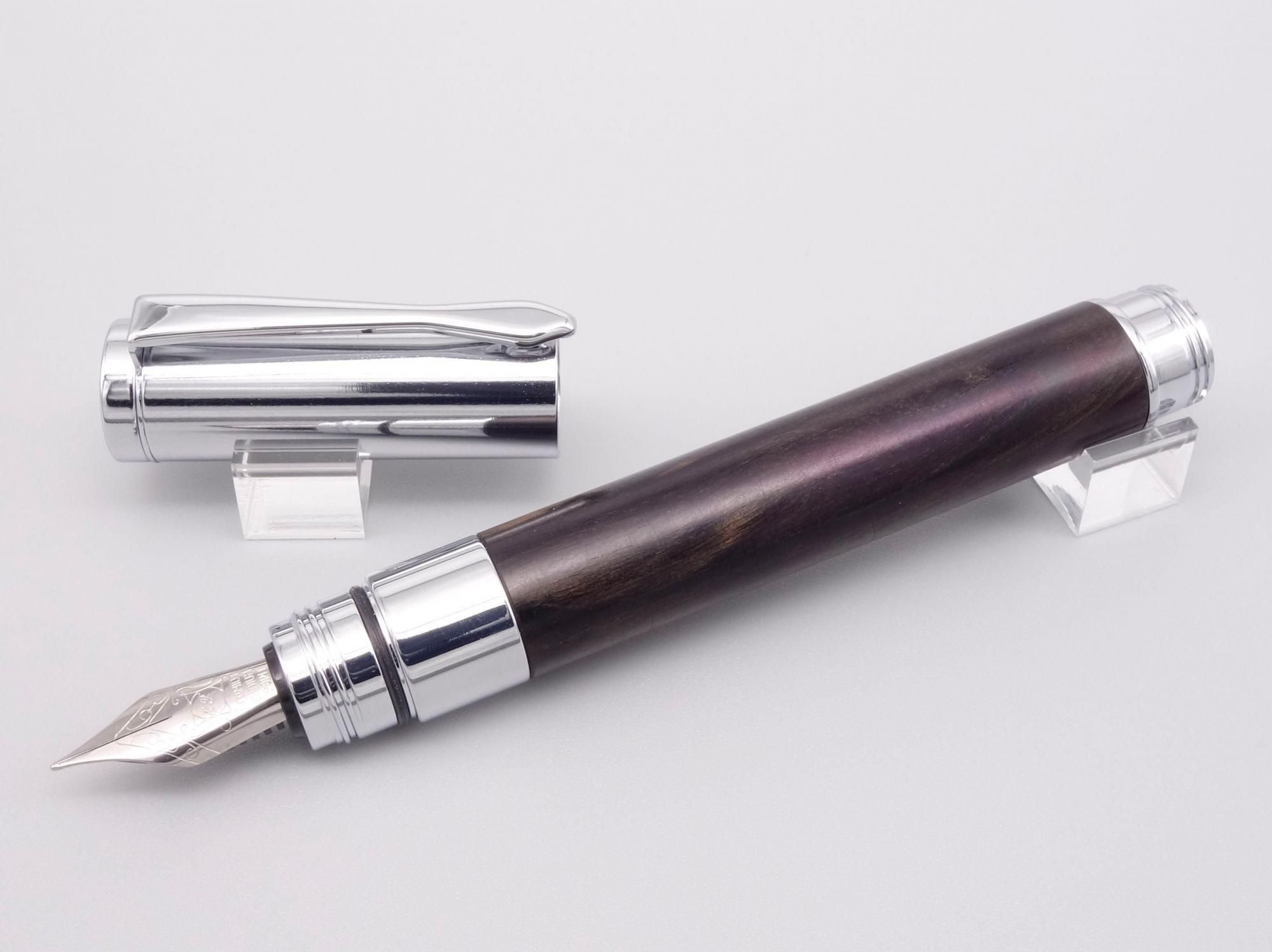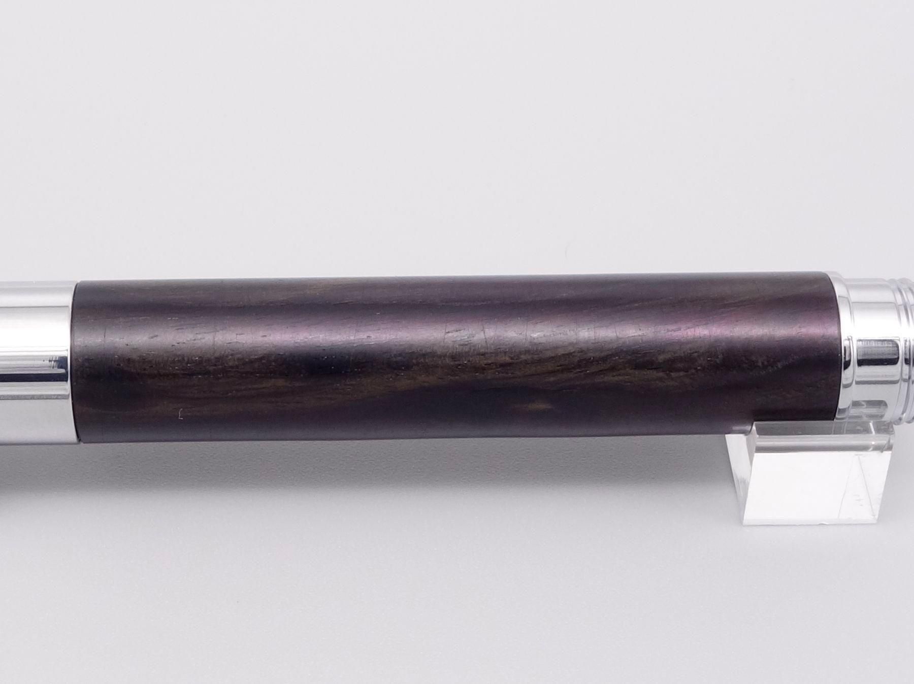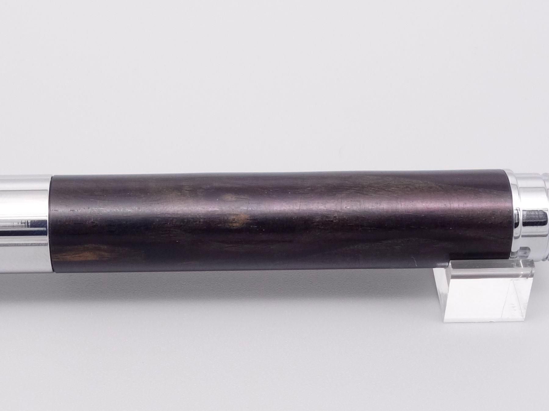特長:ラオスやベトナムなどの東南アジア原産のエボニー。乾燥前の段階では緑色がかっているため日本では青黒檀と呼ばれる。杢の中でも夜空の星のような杢を銀河杢という。