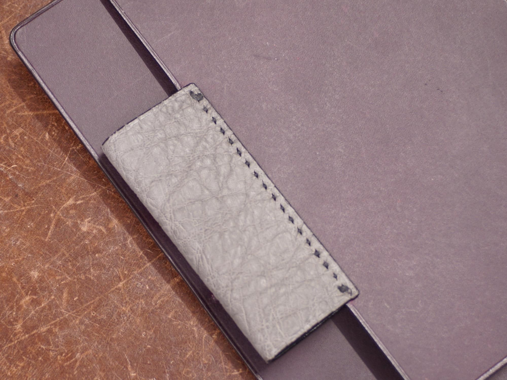 ブッテーロ革にホルダー部分はエレファント革を使い、モンブラン149まで挟める(149のキャップ径は17.4mm)ゆったりとしたサイズ感となっています。