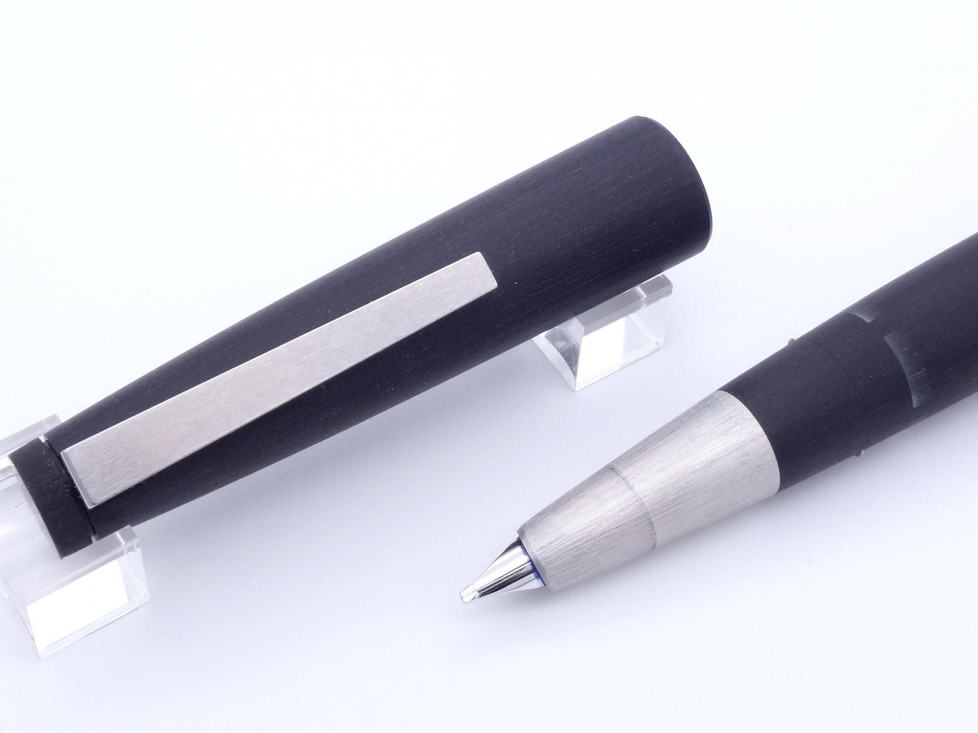 樹脂ボディにヘアライン加工を施しマットな質感に仕上げられた万年筆です。尻軸とボディとの境がわからないほど精巧にデザインされており、ペン先が首軸に覆われていることも相まって特徴的なモデルとして仕上がっています。