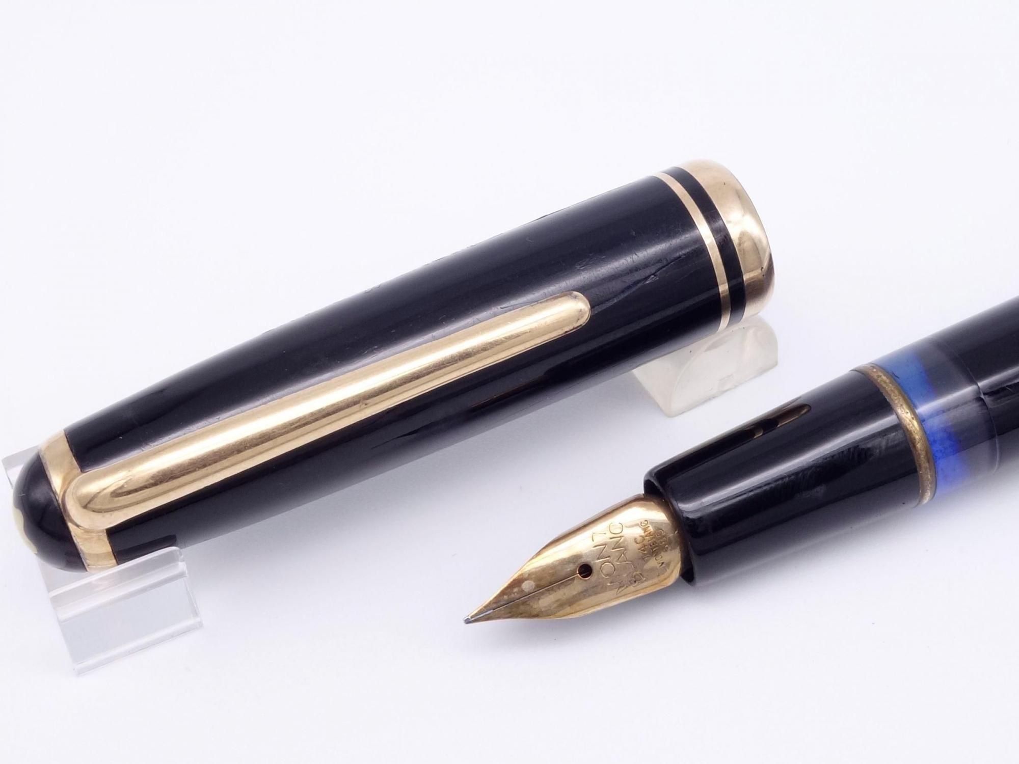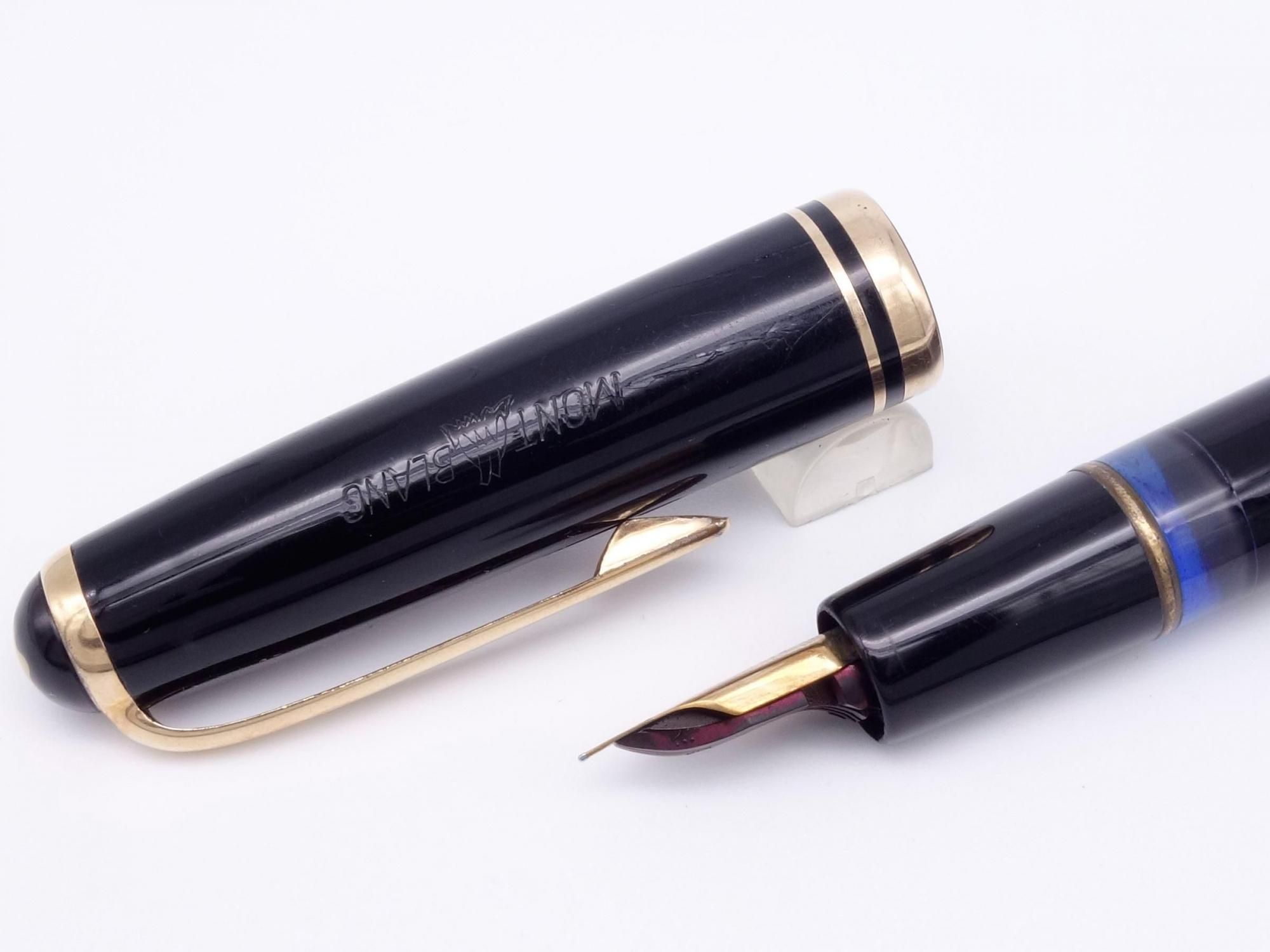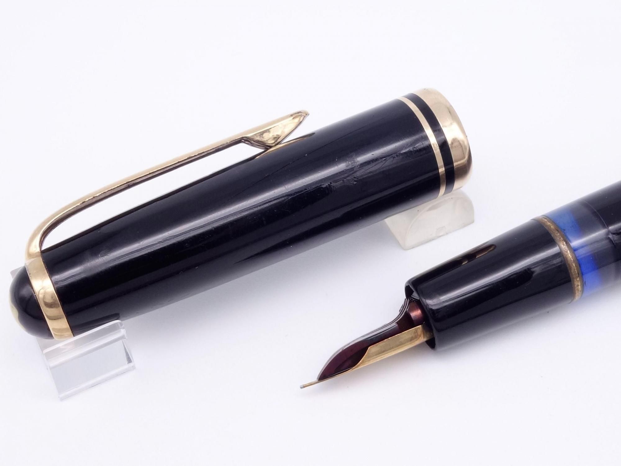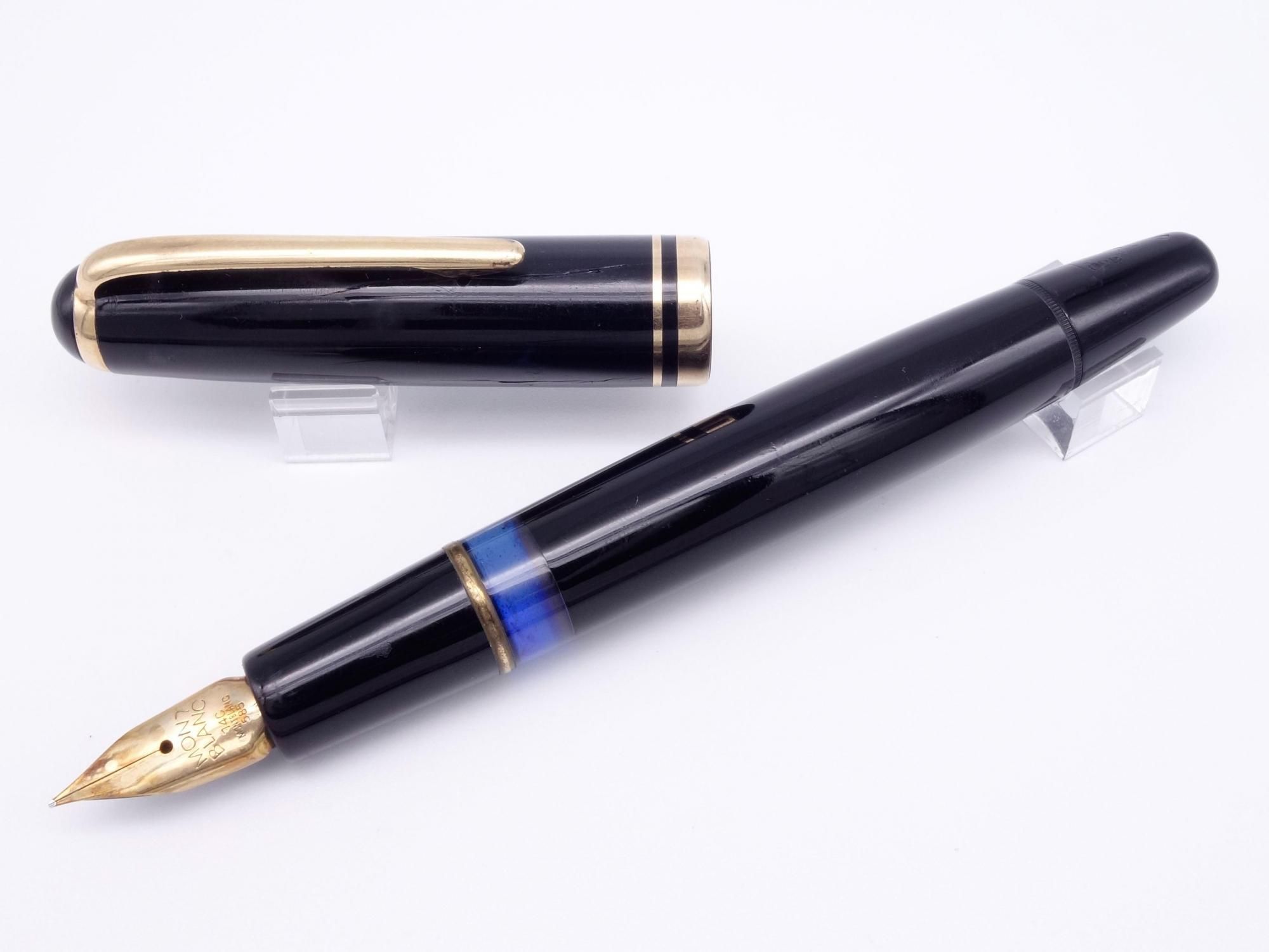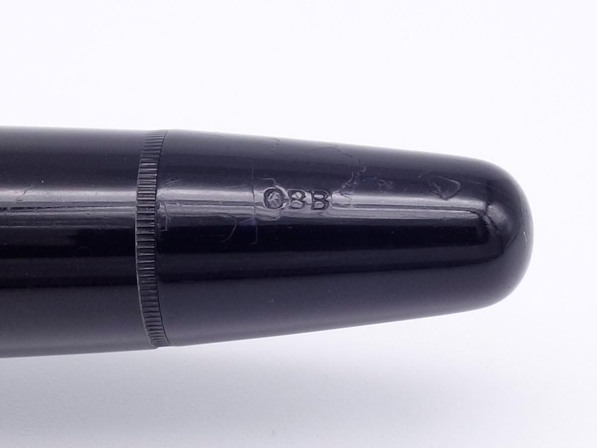 やや黄味がかったホワイトスター、フラットペン芯、ブルー系インクにやや染まった透明のインクビュー、尻軸には「256」と「OBB←」の刻印がありますがペン先はFです。