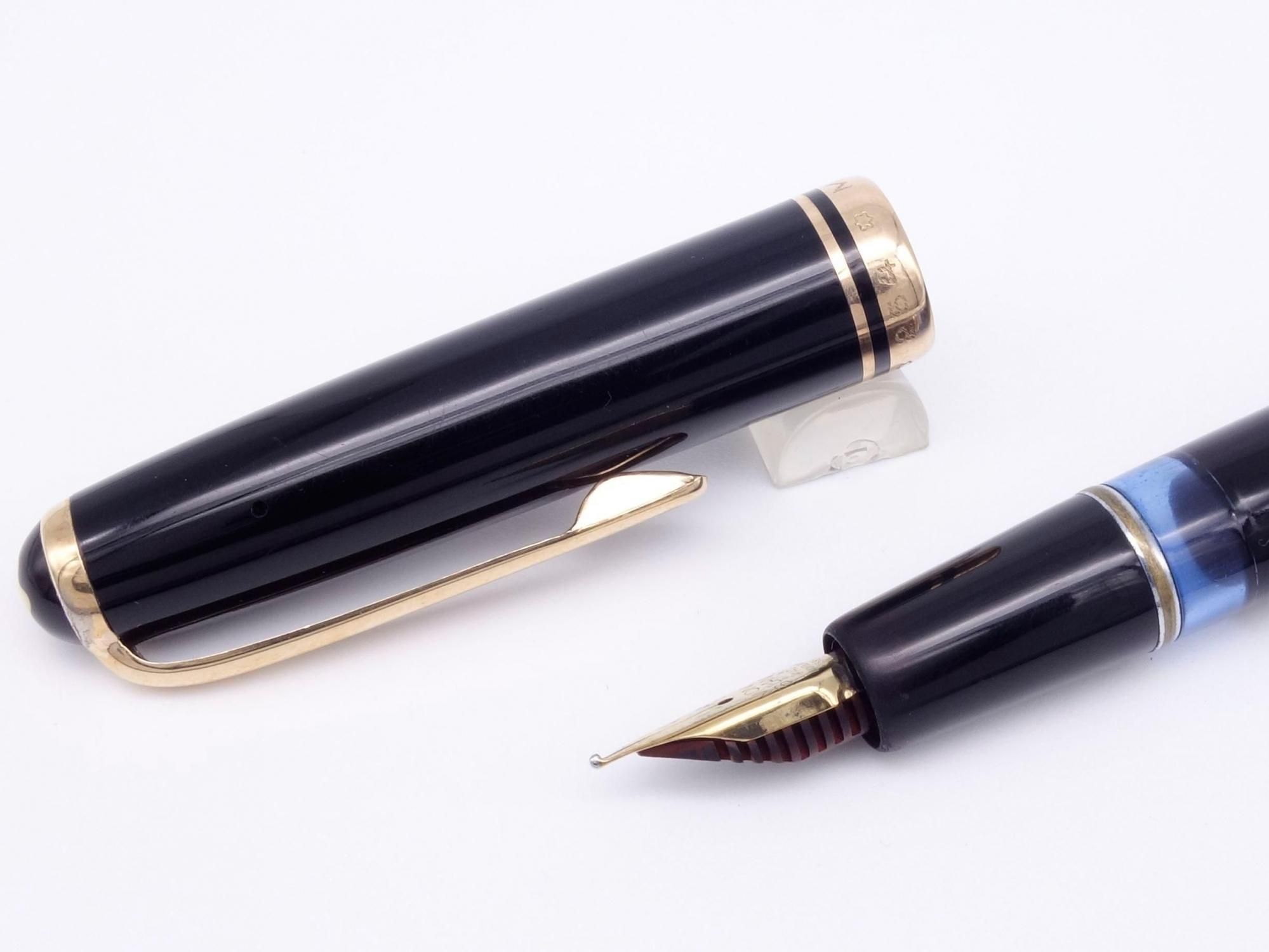 ブルーのインクビュー、尻軸には「OB←」の刻印があります。