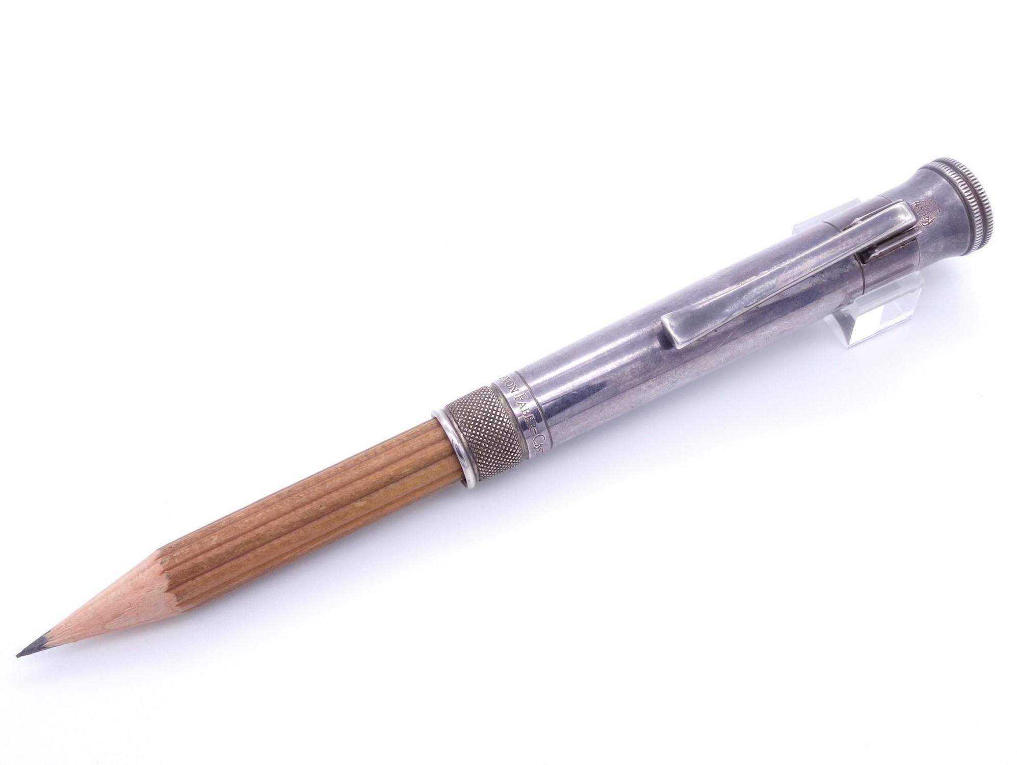 スターリングシルバーのパーフェクトペンシルは天冠部分のリングが2重になっているのが特徴で、このモデルは現行のものとロゴが異なる旧ロゴタイプです。